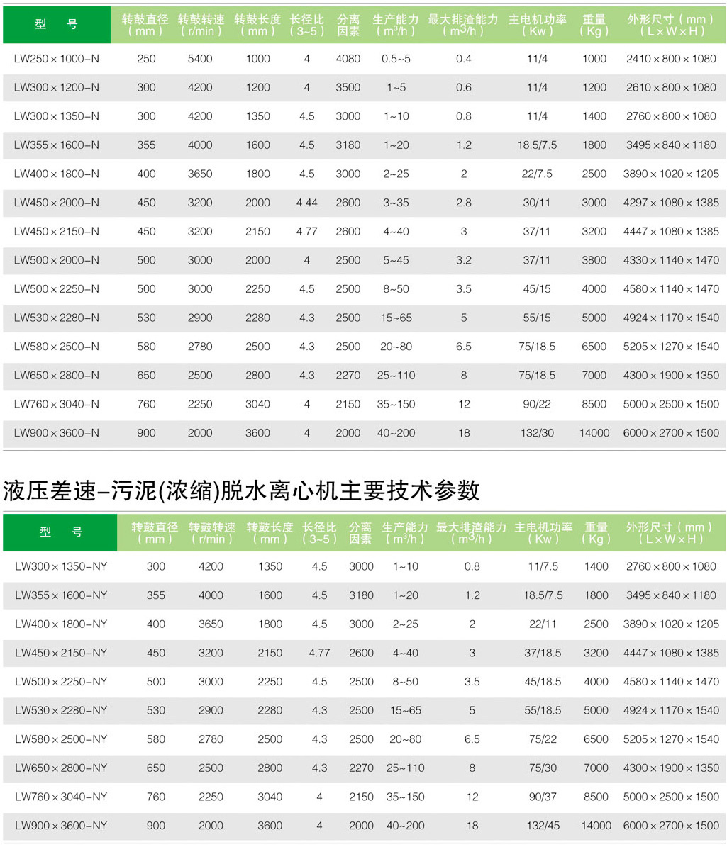 機械差速-污泥(濃縮)脫水離心機主要技術(shù)參數(shù)